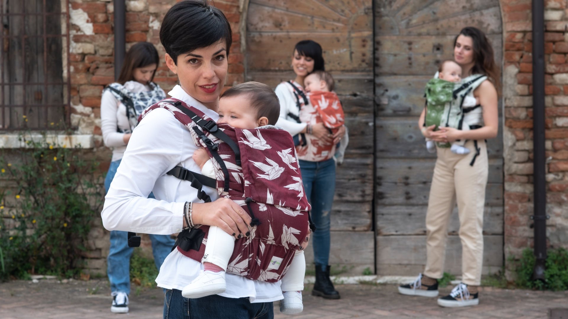 Huggy Nest Baby Size Carriers can be used from first weeks of life to approx. 24 months. The width and length of the back panel are adjustable according to your baby’s knee-to-knee width and height. The height of the panel can be adjusted by pulling down the buckled straps on both sides of the back panel and by adjusting tha Perfect Fit Adjusters (PFAs).