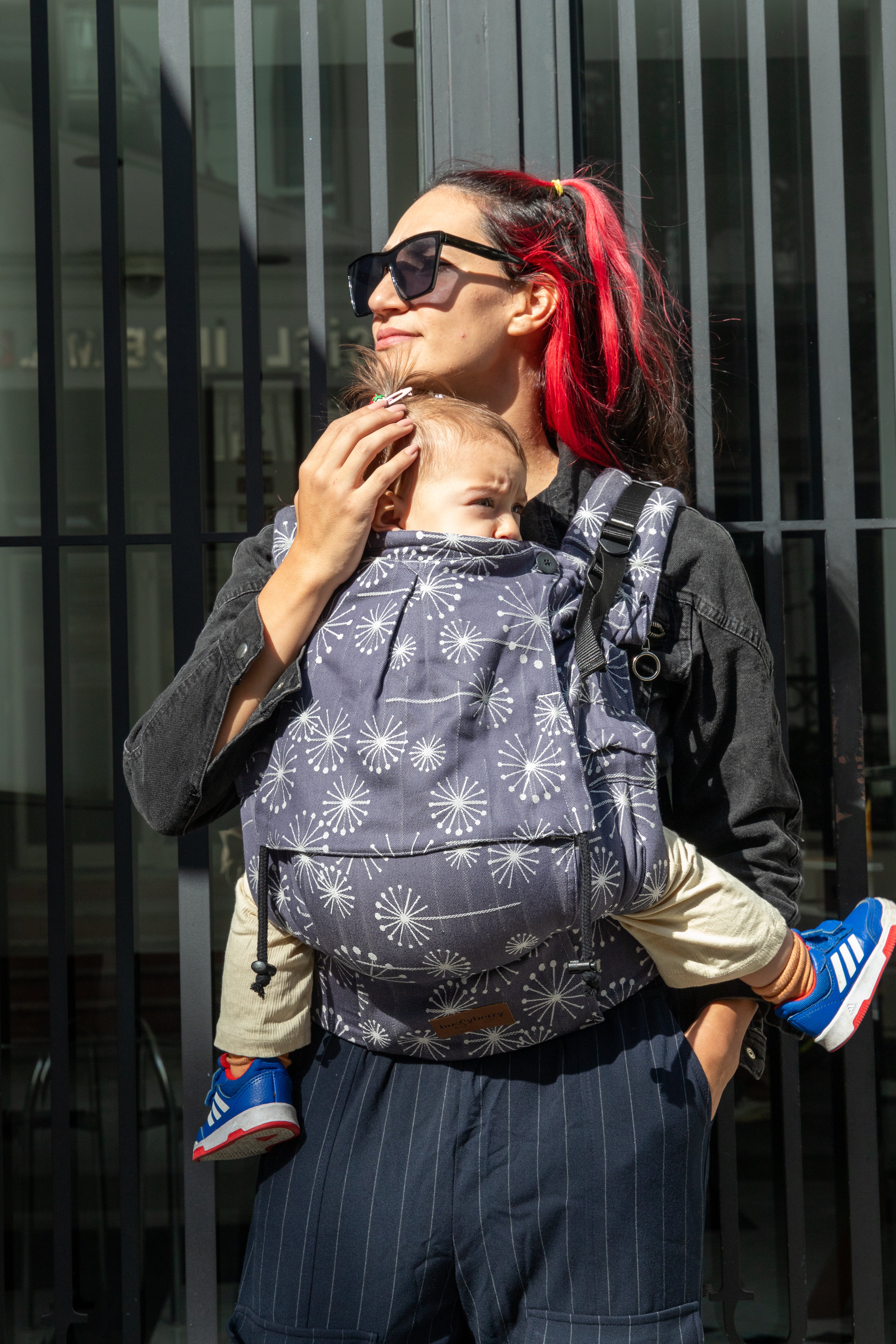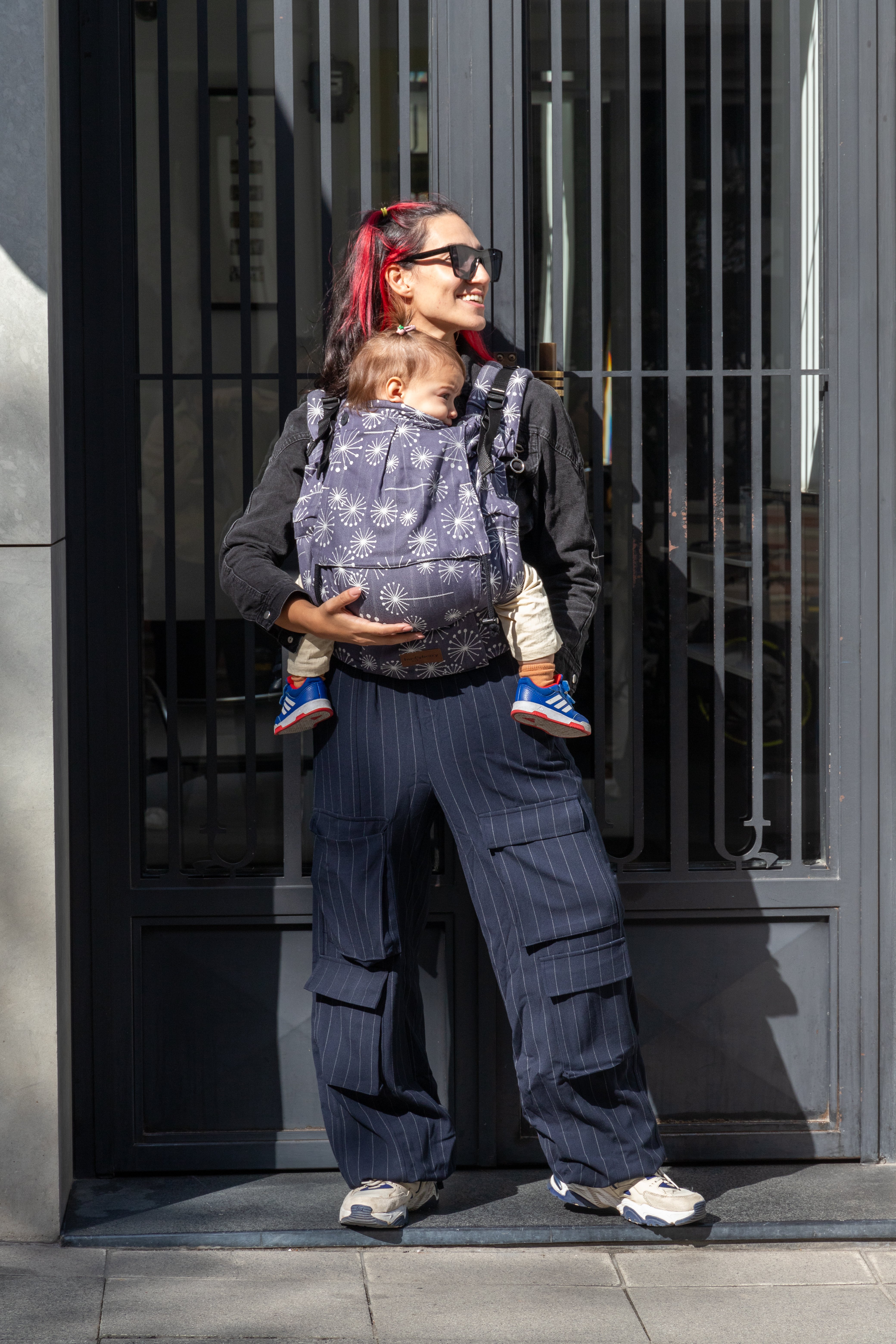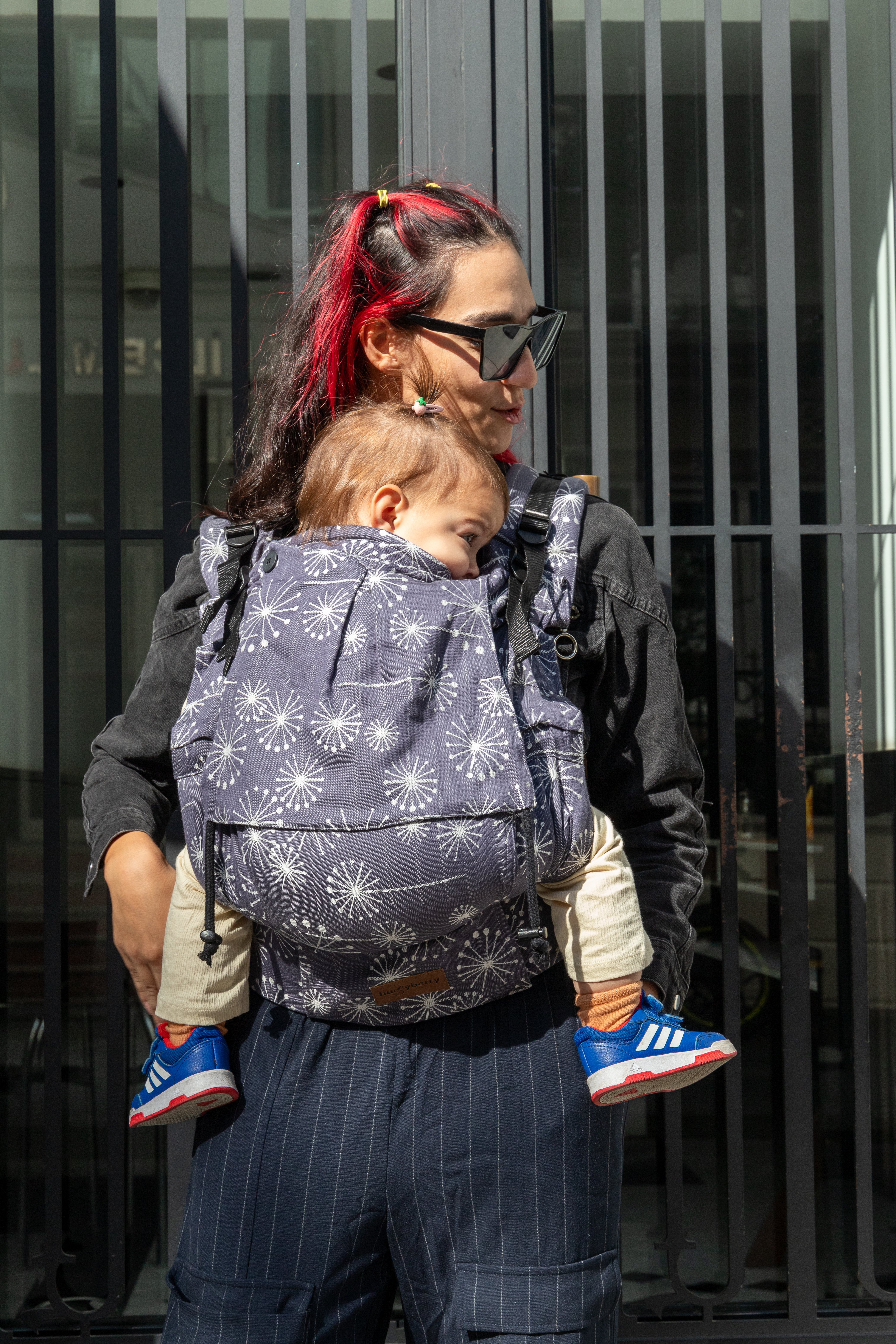 Huggy Plus Toddler Size Full Buckle Carriers are exactly what you need! Did you decided to wait until your baby is a few months old before you want to try a carrier? Did you started with a strechy wrap and now that your little one has grown it doesn't fit anaymore? You can't really buy a regular toddler or pre-schooler size carrier since they are way too big for your little one? We've heard you and createdthe perfect carrier for your needs.