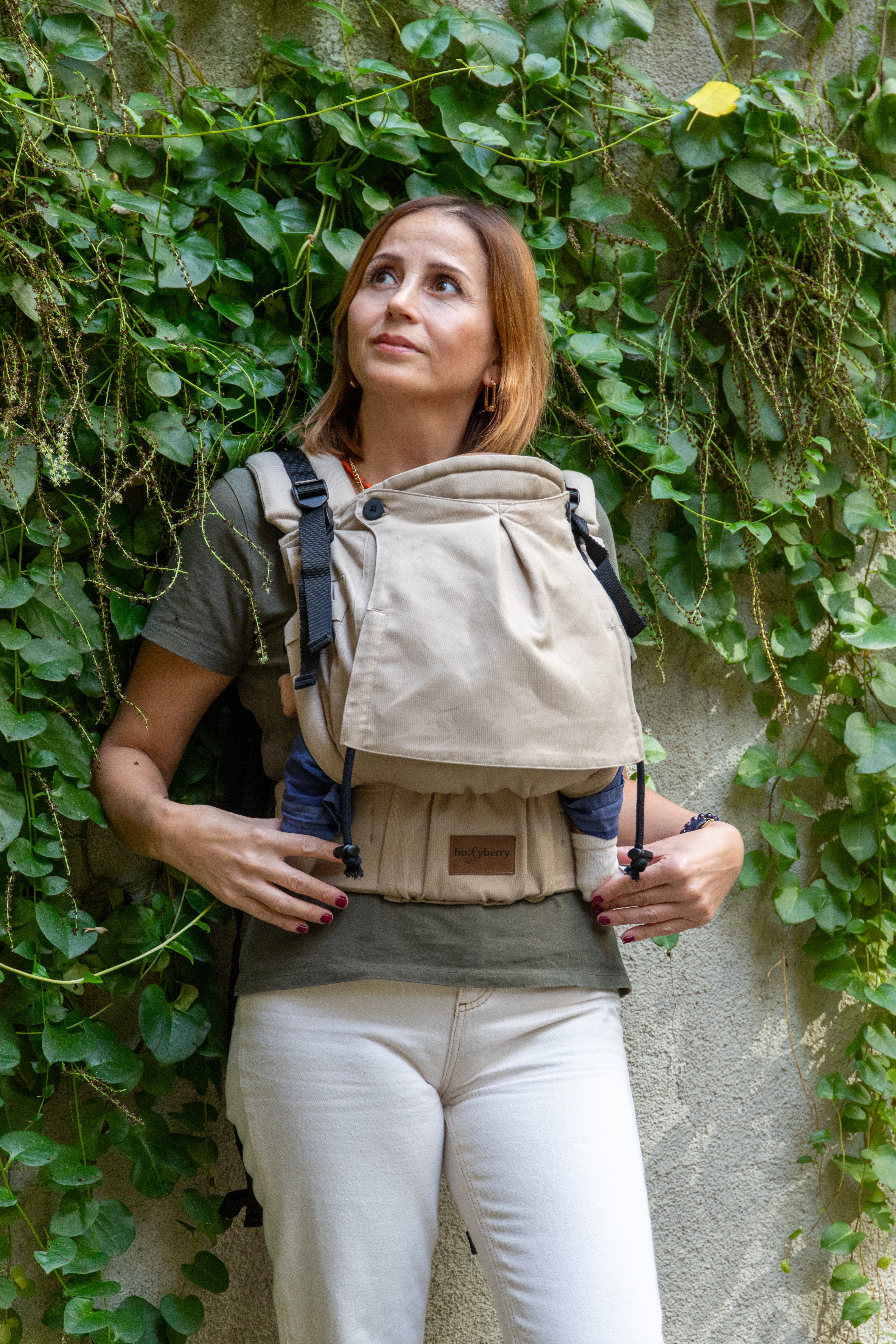 Huggy Plus Toddler Size Carrier - Latte is exactly what you need! Did you decided to wait until your baby is a few months old before you want to try a carrier? Did you started with a strechy wrap and now that your little one has grown it doesn't fit anaymore? You can't really buy a regular toddler or pre-schooler size carrier since they are way too big for your little one? We've heard you and createdthe perfect carrier for your needs.