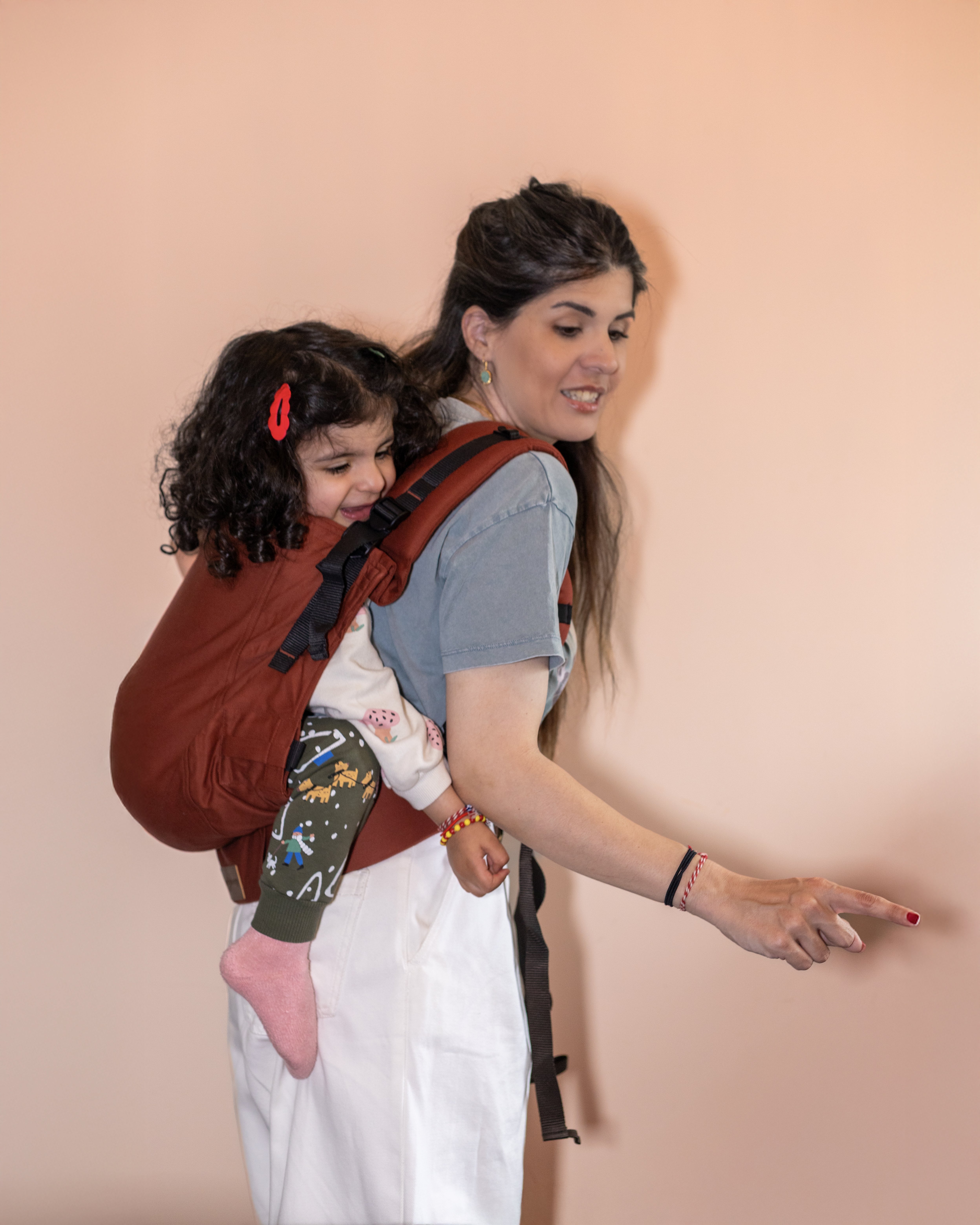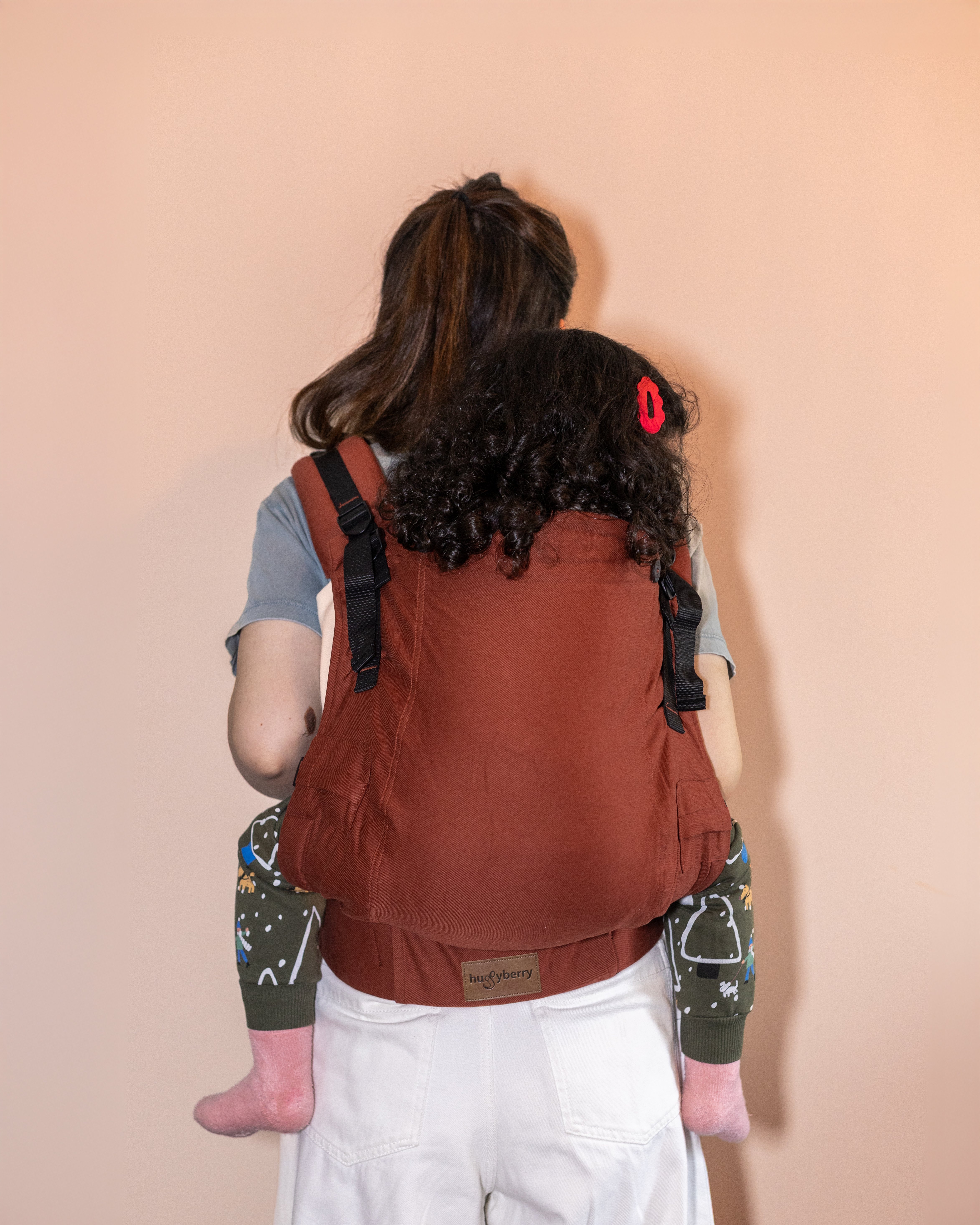 Huggy Plus Toddler Size Carrier - Cocoa tasarımı, uluslararası bebek taşıma toplulukları ve danışmanlarıyla gece gündüz çalışan bir bebek taşıma danışmanı tarafından oluşturulmuştur.
